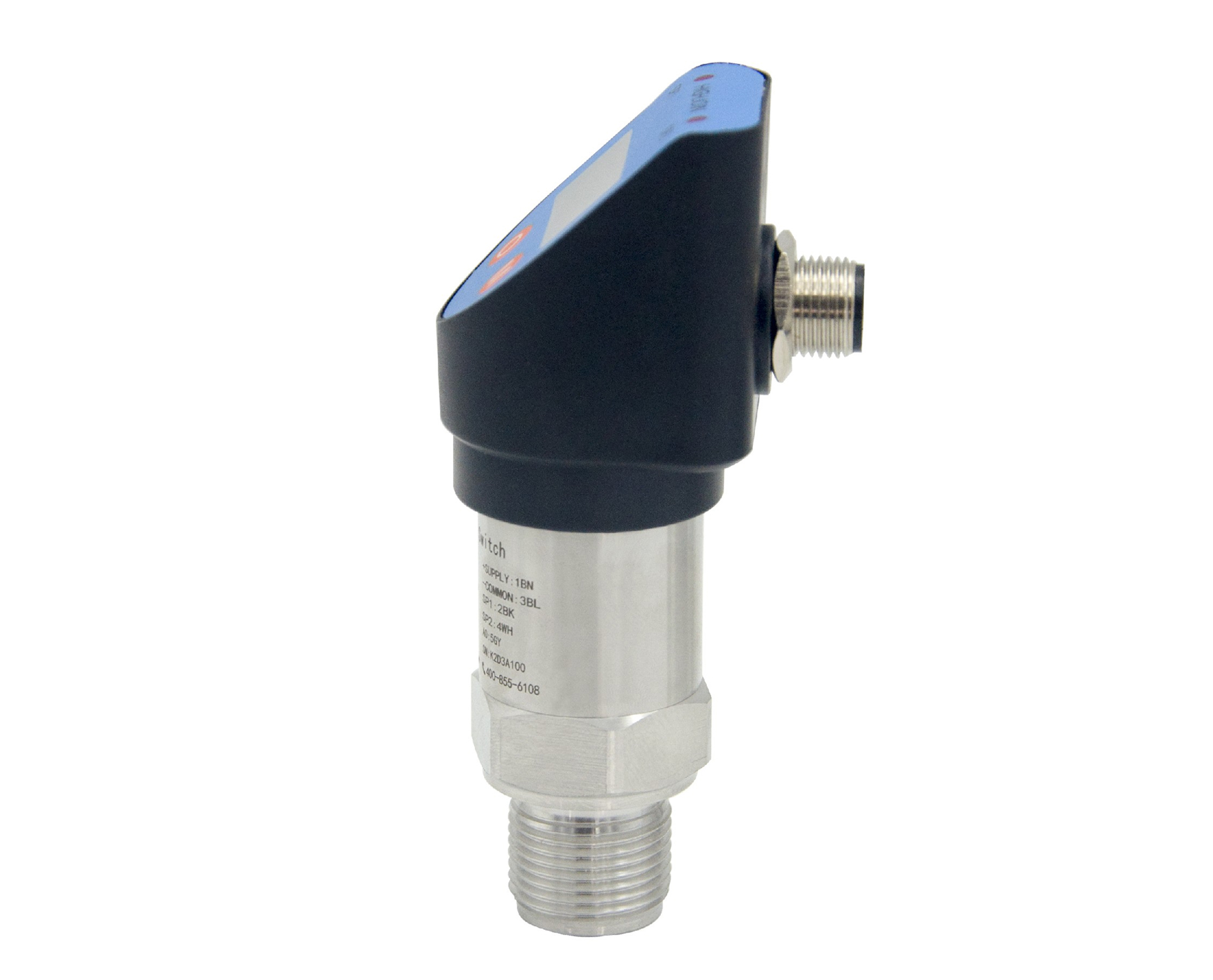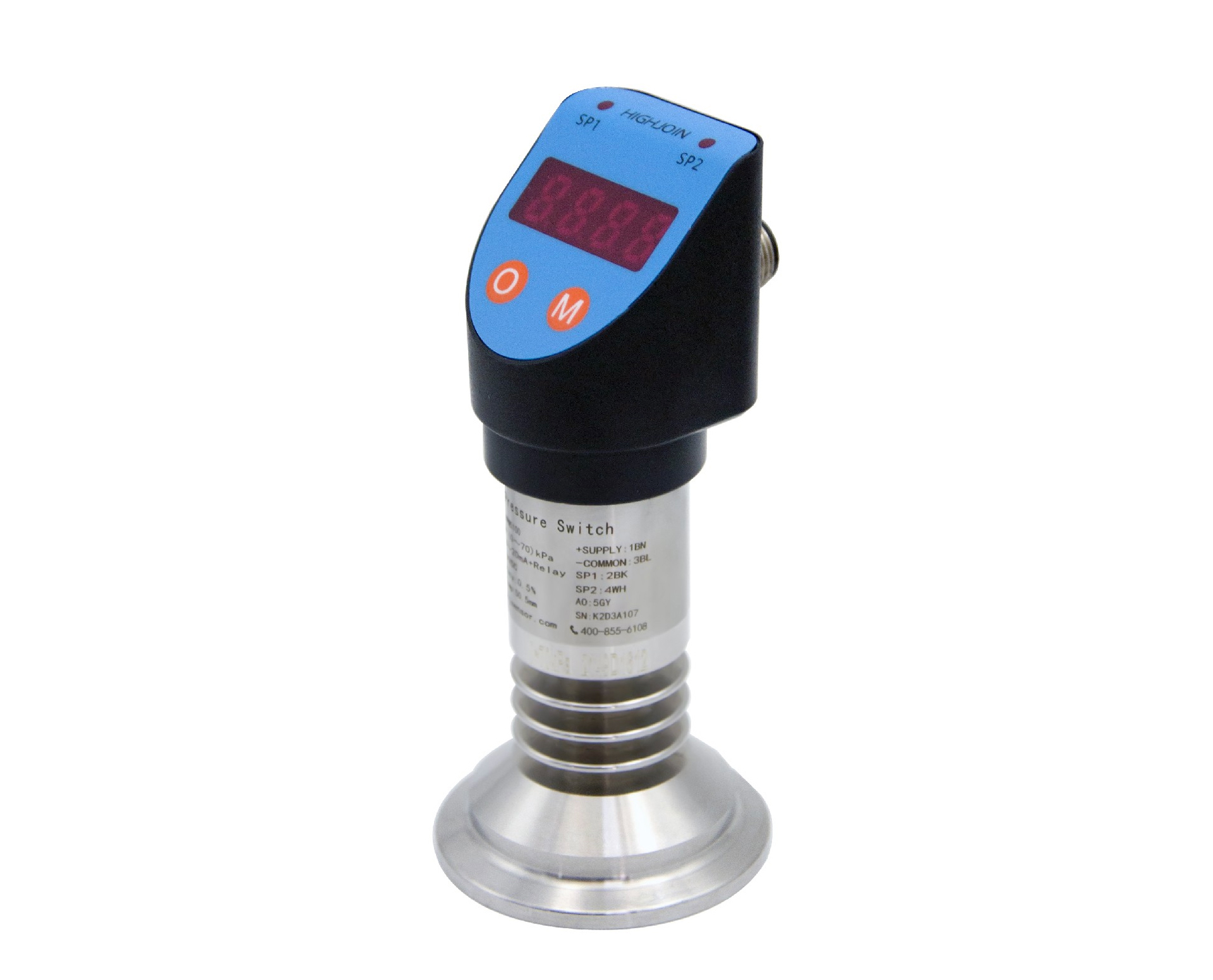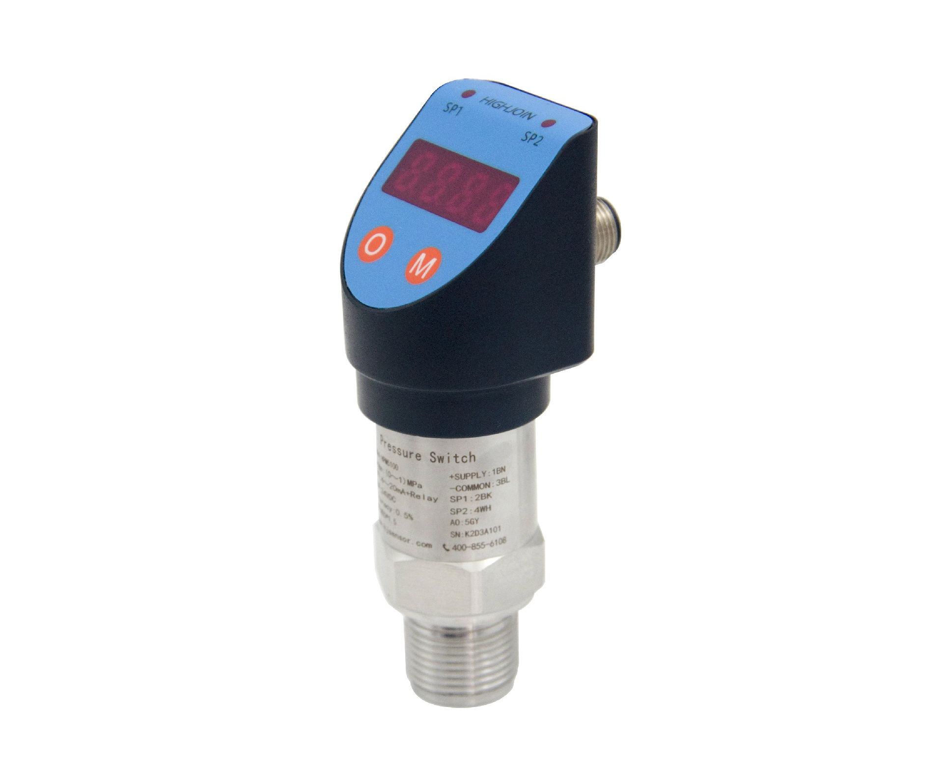 HPM5100型智能壓力開關(guān)為電子結(jié)構(gòu),前端采用高精度和高穩(wěn)型硅壓阻傳感器,經(jīng)信號調(diào)理電路處理,帶現(xiàn)場顯示,可輸出一路4~20mA模擬量,同時可以輸出兩路電子開關(guān)量或一路繼電器開關(guān)量。該產(chǎn)品壓力接口多樣,支持螺紋安裝或卡盤安裝等接口。
